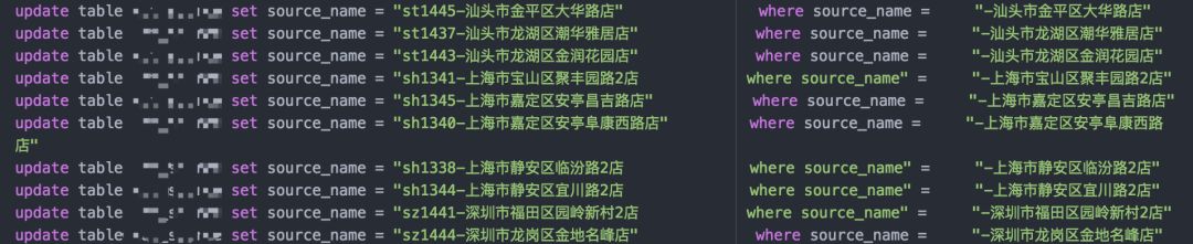 然后开发执行了剩下的SQL,都是和上面的SQL一样,将地址进行更新。执行完成后,开发懵逼了,发现source_name都变成了0,开发赶紧给我打电话说: