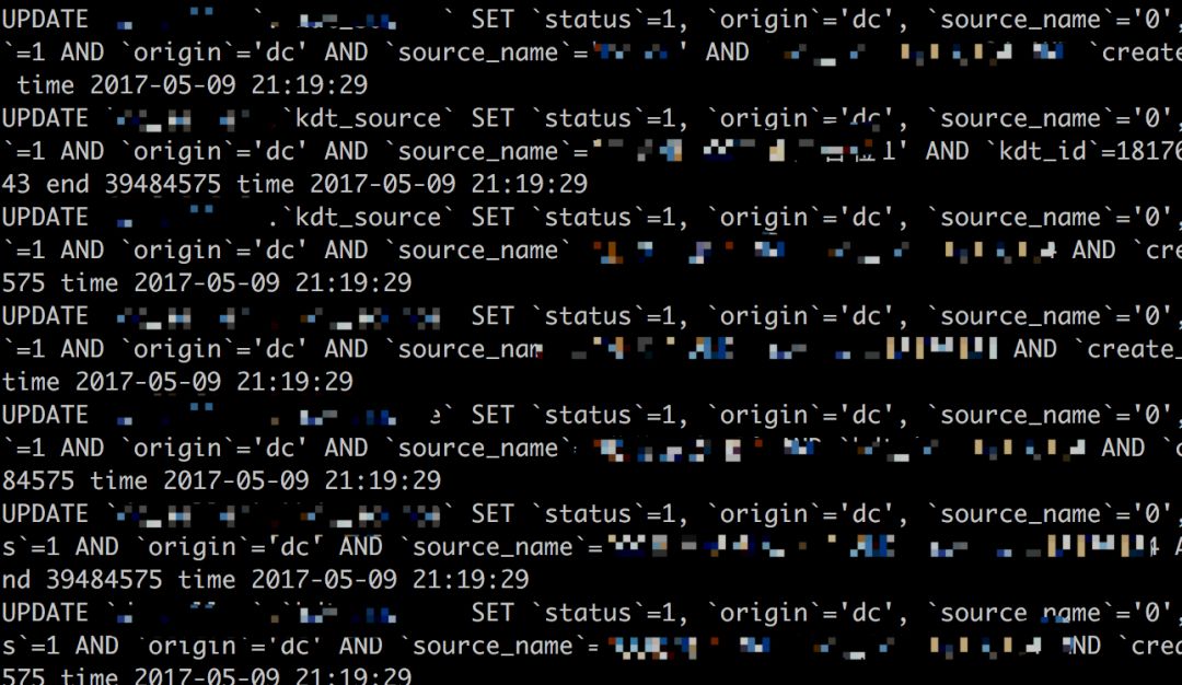 我赶紧登上服务器,查看了这段时间的binlog,发现了大量的update tablename set source_name=0的语句,利用binlog2sql进行了解析,项目地址: