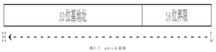 GDTR为GDT寄存器。结构与GDTPTR类似,6字节,前两字节GDT界限,后4字节GDT基地址。