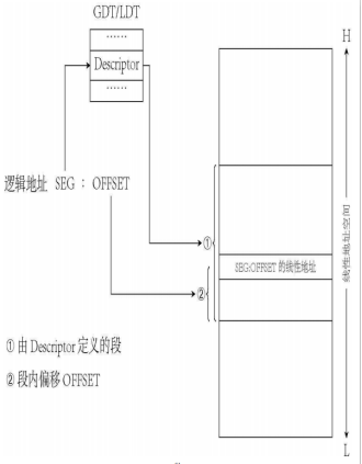 descriptor为段描述符,包含段基址,段界限,段属性。其结构如图