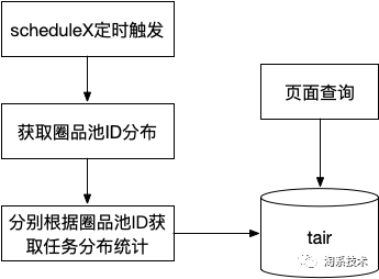 一个完善的平台少不了系统可视化,任务处理进度是可视化中重要的部分。任务数量统计就少不了group by和count,任务表最大的时候可能存在上百万的数据,同步方式进行统计肯定是不行的,因此采用如下图3.9所示异步方式。利用覆盖索引方式得到圈品池ID的分布,每个圈品池的任务不会很大,因此每个圈品池分开统计将不会产生慢sql。