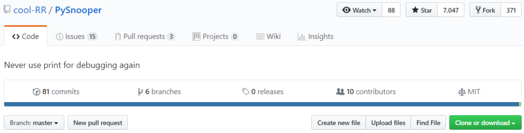 目前,PySnooper在GitHub上已经获得7047个Star,371个Fork(GitHub地址:https://github.com/cool-RR/PySnooper)