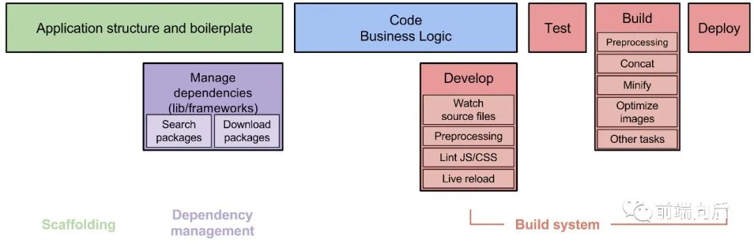 为了管理和简化前端开发过程,前端框架、自动化、构建系统应运而生并发展迅猛