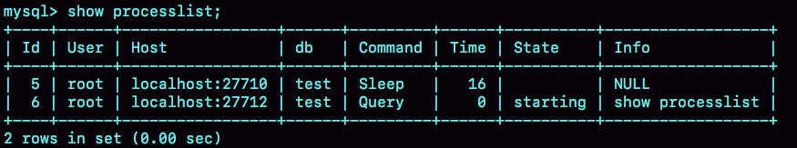 mysql> show processlist;