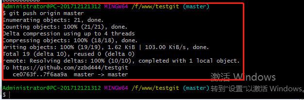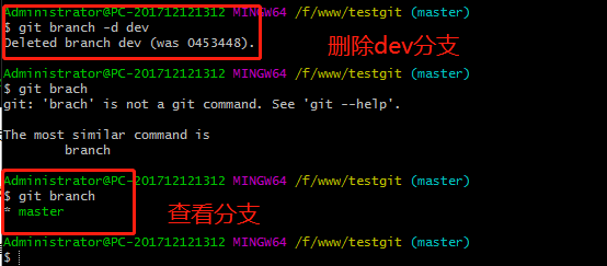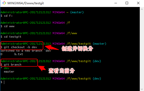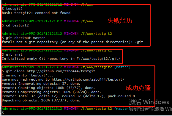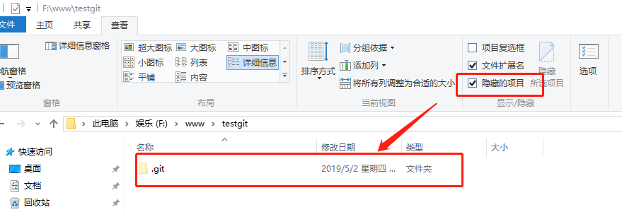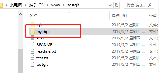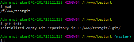 如下我是F盘 –> www下 目录下新建一个testgit版本库。