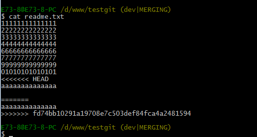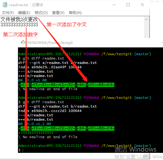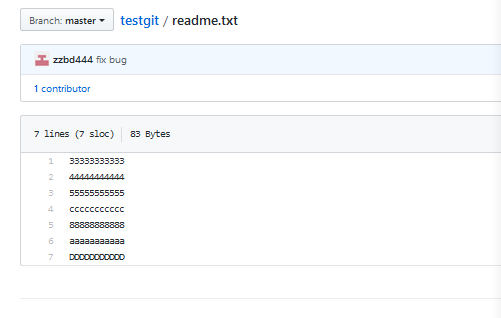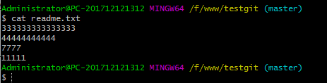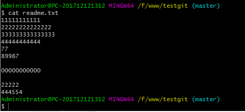 比如我现在在readme.txt文件里面增加一行 内容为11111,我们先通过命令查看如下: