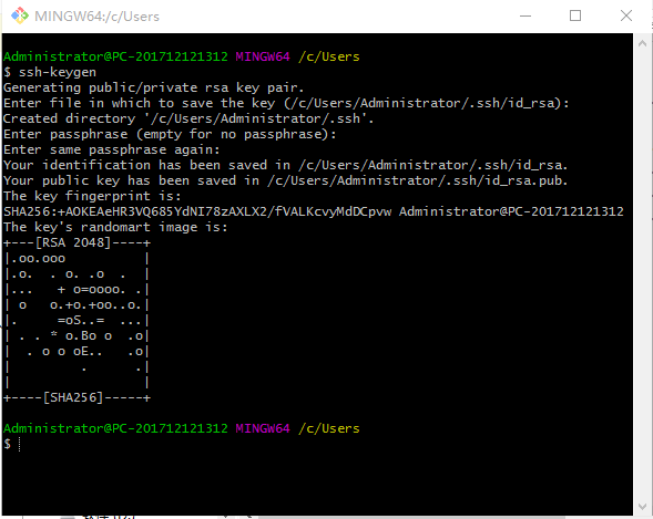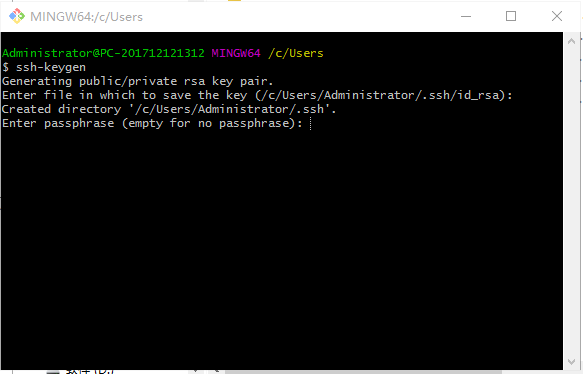 第一步:创建SSH Key。在用户主目录下,看看有没有.ssh目录,如果有,再看看这个目录下有没有id_rsa和id_rsa.pub这两个文件,如果有的话,直接跳过此如下命令,如果没有的话,执行以下步骤: