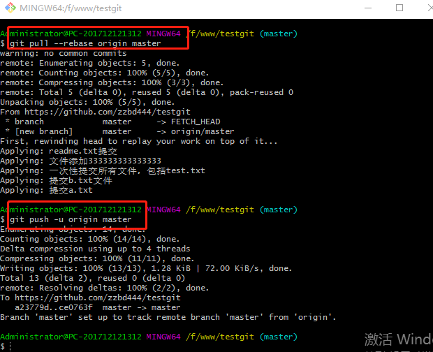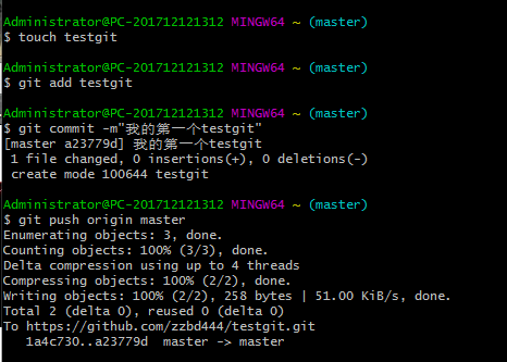由于远程库是空的,我们第一次推送master分支时,加上了 –u参数,Git不但会把本地的master分支内容推送的远程新的master分支,还会把本地的master分支和远程的master分支关联起来,在以后的推送或者拉取时就可以简化命令。