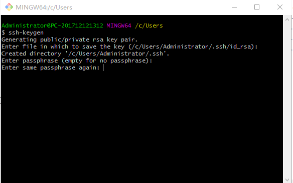 $ ssh-keygen -t rsa -C"your_email@youremail.com"(后面的your_email@youremail.com改为你的邮箱。)