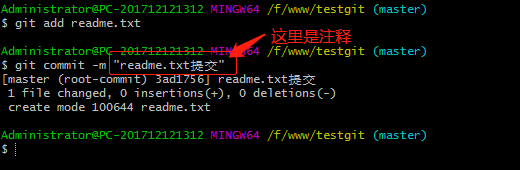 第二步:用命令 git commit告诉Git,把文件提交到仓库。