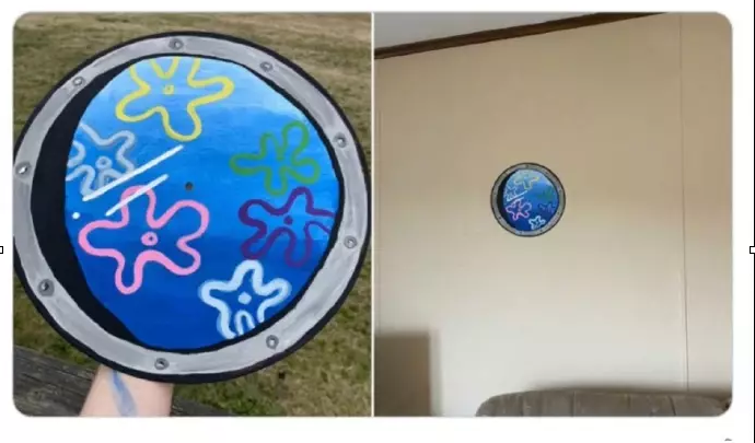 @落落酱把家里的老唱片画成了海绵宝宝里的窗户了。也许是他太闲了 哈哈