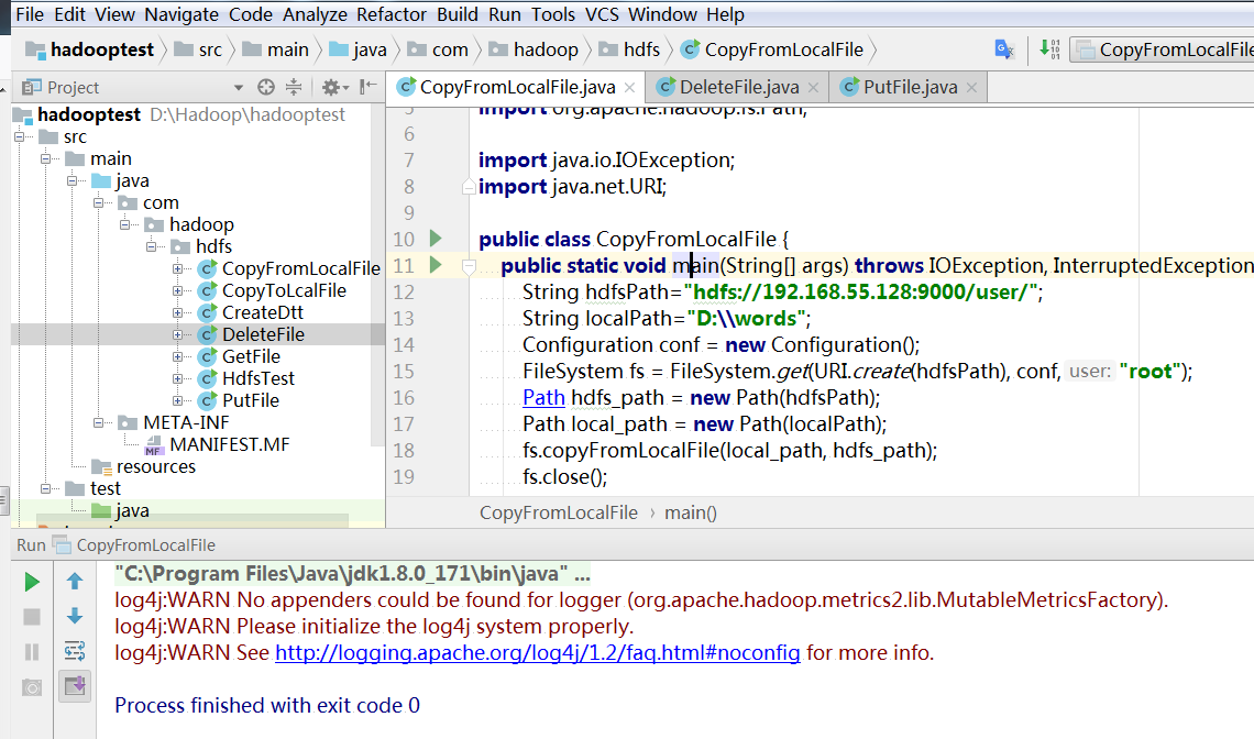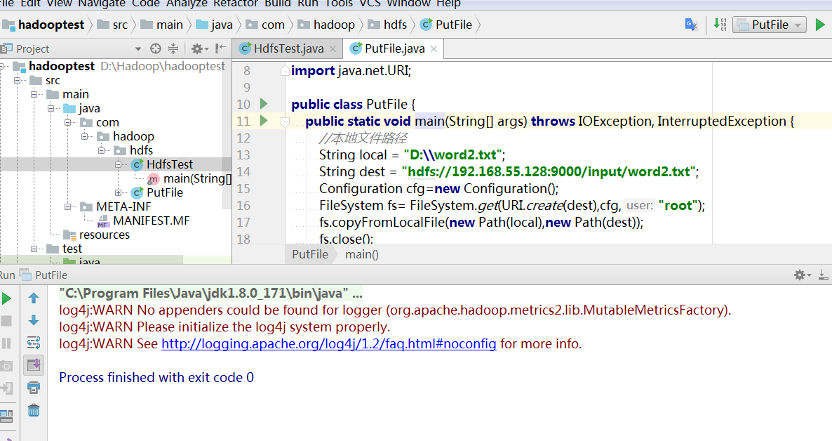 String dest = "hdfs://192.168.55.128:9000/input/word2.txt";