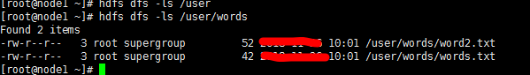 -rw-r--r--   3 root supergroup         52  10:01 /user/words/word2.txt