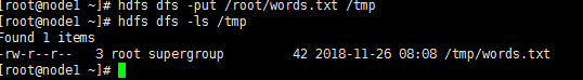[root@node1 ~]# hdfs dfs -put /root/words.txt /tmp