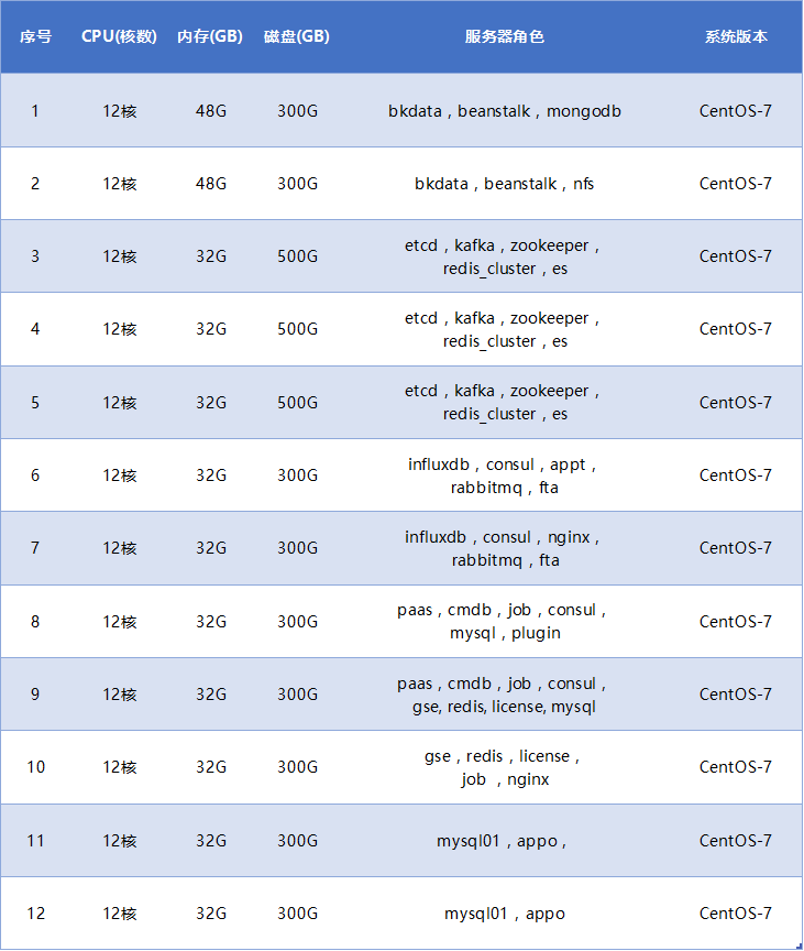 表2:蓝鲸企业版资源配置表(12台架构)