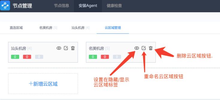 扩展方法:在节点管理中,一键创建云区域。