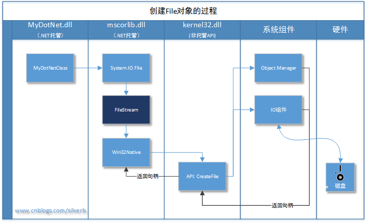 - 包含着文件句柄的SafeFileHandle会被返回并存放在FileStream对象中。随后的读取和写入操作,FileStream都会使用这个句柄与Windows API进行交互,直到最终关闭句柄。至始至终,我们的代码都无需直接关心句柄的存在,FileStream负责了绝大部分工作。