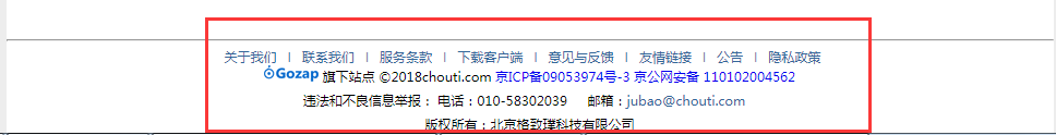 footer分为友情链接和备案信息两部分,代码结构如下: