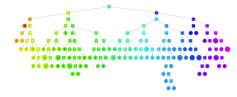 (3)所有树返回近邻点都插入到优先队列中,求并集去重, 然后计算和查询点距离, 最终根据距离值从近距离到远距离排序, 返回Top N近邻节点集合