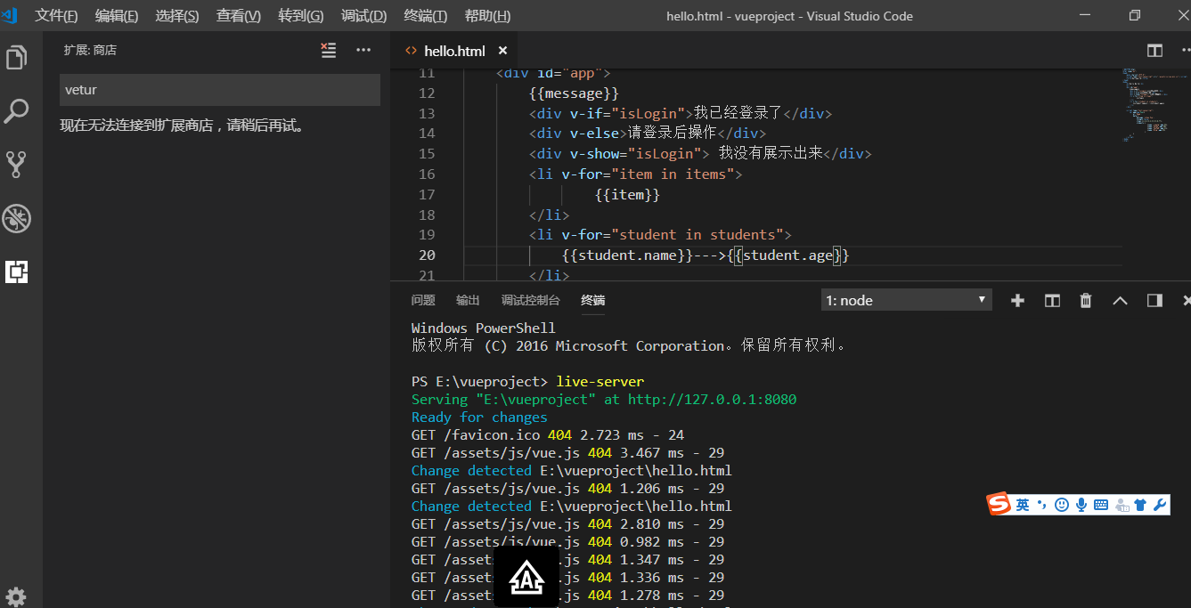 v-if用来判断是否加载html的DOM,比如我们模拟一个用户登录状态,在用户登录后现实用户名称。