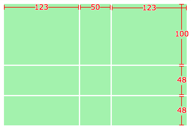 .game-board{grid-gap:2px;display: grid;width:300px;height:200px;grid-template-rows: 100px 1fr 1fr;grid-template-columns: 1fr 50px 1fr;}