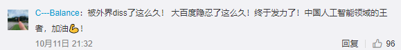 “被外界diss了这么久!大百度隐忍了这么久终于发力了!中国人工智能领域的王者,加油!”