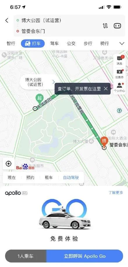 若想体验免费自动驾驶出租车的话,大家可以通过以下两种方式打车: