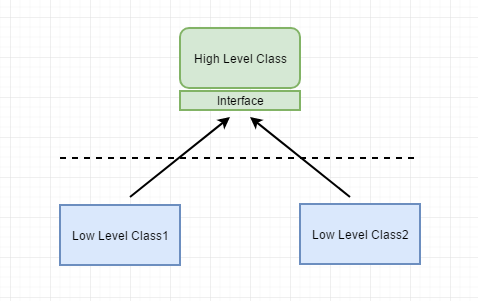 高层模块不依赖于低层模块的实现,而低层模块依赖于高层模块定义的接口。通俗来讲,就是高层模块定义接口,低层模块负责实现。