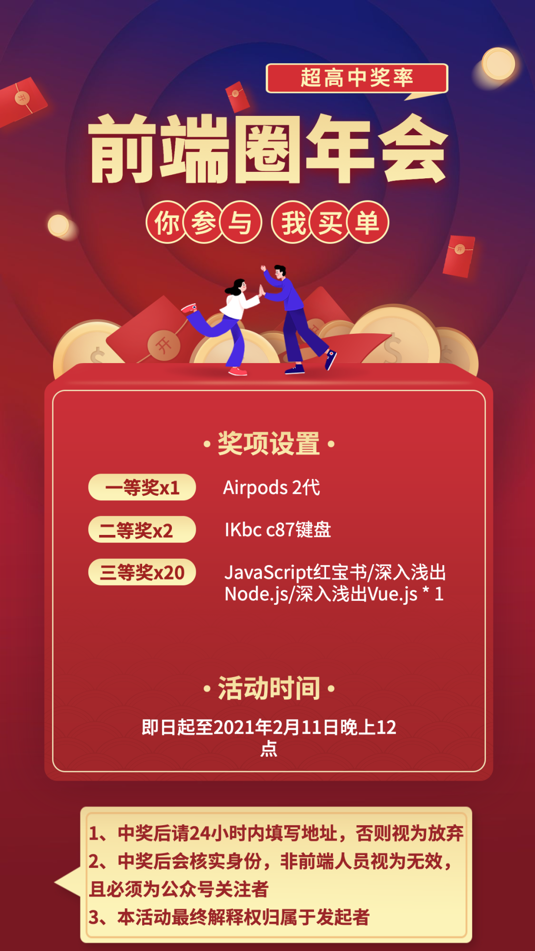 “其中三等奖包含:红宝书 * 10 + 深入浅出 Node.js/深入浅出 Vue.js 任选其一(共 10 本),遵循先到先选原则~
