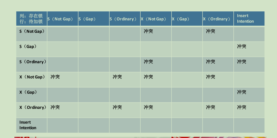 - LOCK_ORDINARY(同时锁记录+记录前的GAP,Next key锁)