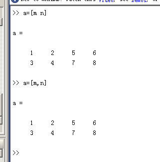 5.矩阵的建立方法,定界符[ ],分隔符:空格或者逗号分隔同一行元素,分号分或回车隔不同行