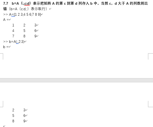 A(:,end)表示引用最后一列元素,“:”表示所有列或行,“end”表示最后一列或列,“end-n”表示倒数第n行或列