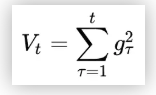 怎么样去度量历史更新频率呢?那就是二阶动量——该维度上,迄今为止所有梯度值的平方和: