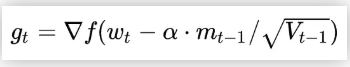 然后用下一个点的梯度方向,与历史累积动量相结合,计算步骤 2 中当前时刻的累积动量。