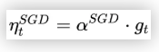 这个式子中,前半部分是实际的学习率(也即下降步长),后半部分是实际的下降方向。SGD算法的下降方向就是该位置的梯度方向的反方向,带一阶动量的SGD的下降方向则是该位置的一阶动量方向。自适应学习率类优化算法为每个参数设定了不同的学习率,在不同维度上设定不同步长,因此其下降方向是缩放过(scaled)的一阶动量方向。