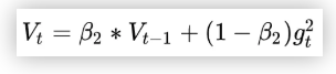 修改的思路很简单。前面我们讲到,指数移动平均值大约就是过去一段时间的平均值,因此我们用这一方法来计算二阶累积动量: