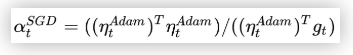 这样我们就知道该如何确定SGD的步长(学习率)了——SGD在Adam下降方向上的正交投影,应该正好等于Adam的下降方向(含步长)。也即: