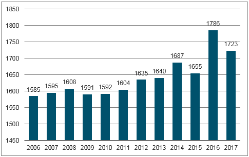 初中:每年招生1600万人,在校4600万人,每年毕业1367万人。