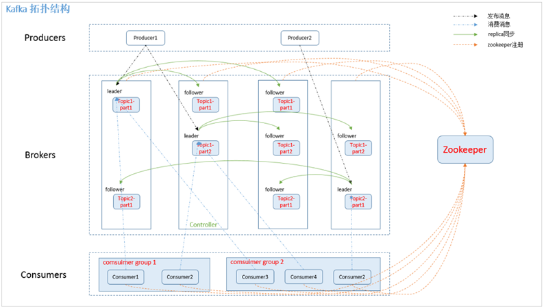 这是Kafka用来实现一个Topic消息的广播(发给所有的Consumer)和单播(发给某一个Consumer)的手段。一个Topic可以对应多个Consumer Group。如果需要实现广播,只要每个Consumer有一个独立的Group就可以了。要实现单播只要所有的Consumer在同一个Group里。用Consumer Group还可以将Consumer进行自由的分组而不需要多次发送消息到不同的Topic。