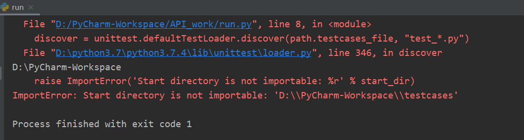 5.1 报错提示:ImportError: Start directory is not importable: 'D:\\PyCharm-Workspace\\testcases'