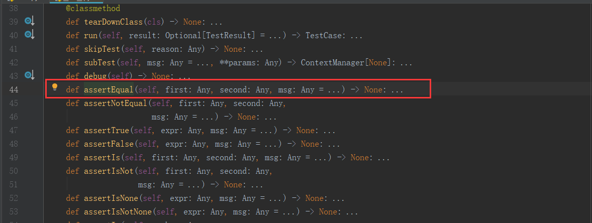 1、以 assertEqual 为例分析,在pycharm中通过ctrl(command)+🖱️左键我们可以定位到方法的位置:
