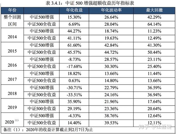 基于和2.2节的选股方式和2.3节的权重优化相同的策略构建方案,图3.4.1和表3.4.1展示了以中证500为基准的预期股息率增强策略。由于中证500自2017年起的表现就较为弱势,因此预期股息率策略的增强效果更明显,2019年以前历年表现均优于中证500全收益。2020年初由于中小盘股的强势表现,增强策略的超额收益明显为负,策略在未来的表现尚需观察。