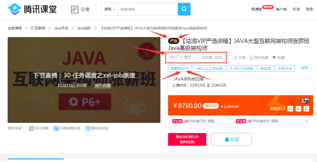 为打造精英教学模式,本次招生活动,Java架构精英班课程只招收50名学员,学员人数达标即结束活动!