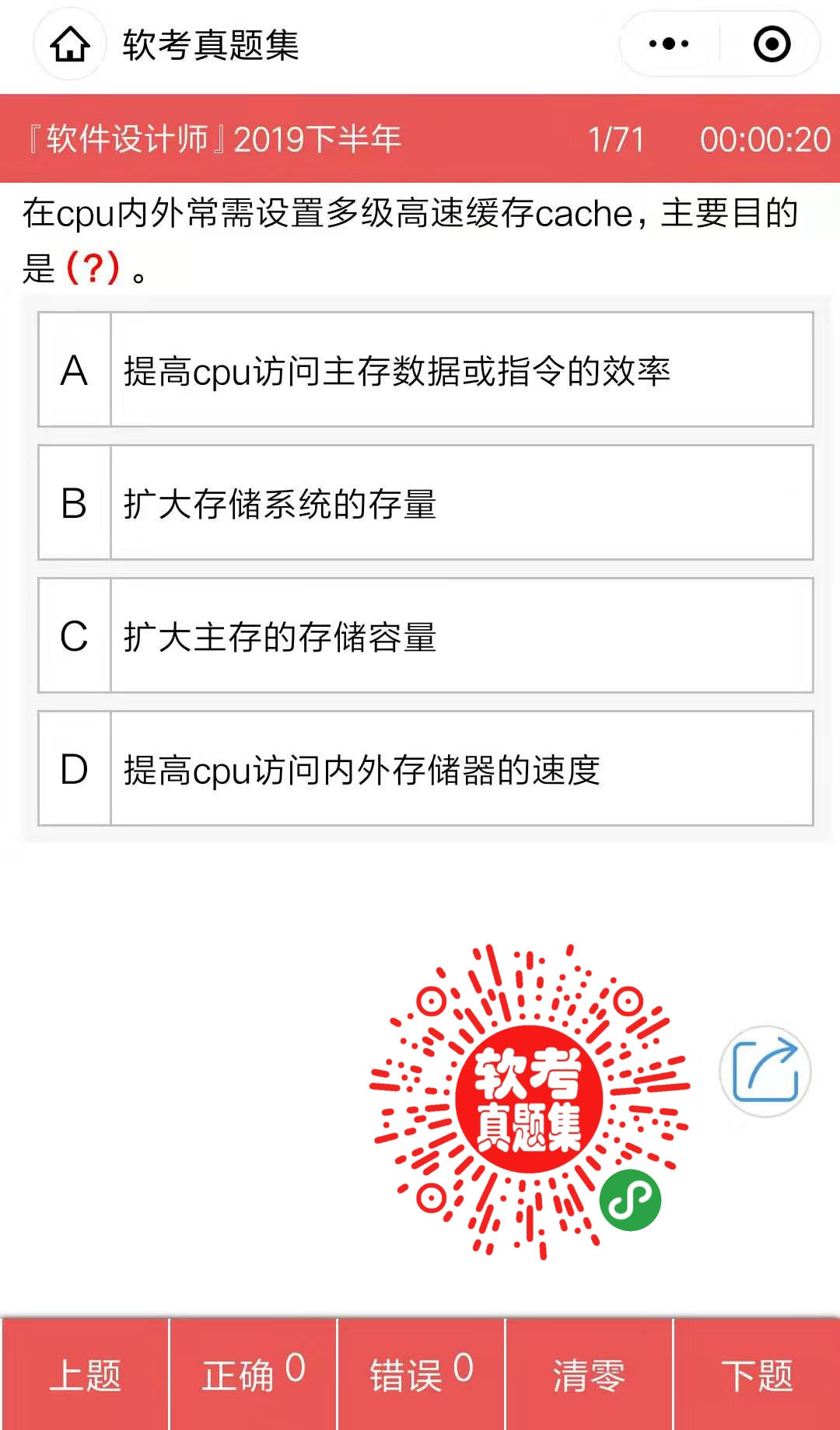更多软考历年(2017-2019)题目,请前往“微信小程序”,搜索【软考真题集】。