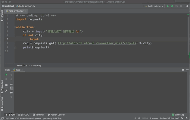 不过这里由于我们发起了网络请求用到了第三方库 requests,所以在运行之前还需要使用 pip install requests 命令把该库下载到 Python 的安装目录下。