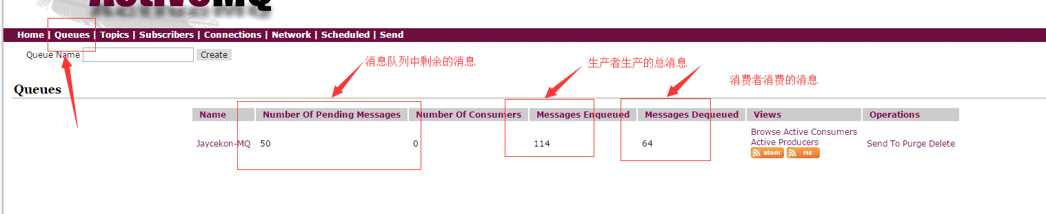 查看运行结果,我们可以做ActiveMQ 服务端:http://127.0.0.1:8161/admin/ 里面的Queues 中查看我们生产的消息。
