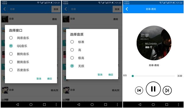 小清新界面,支持网易云,QQ,虾米,酷狗,百度,在线试听及下载付费音乐。