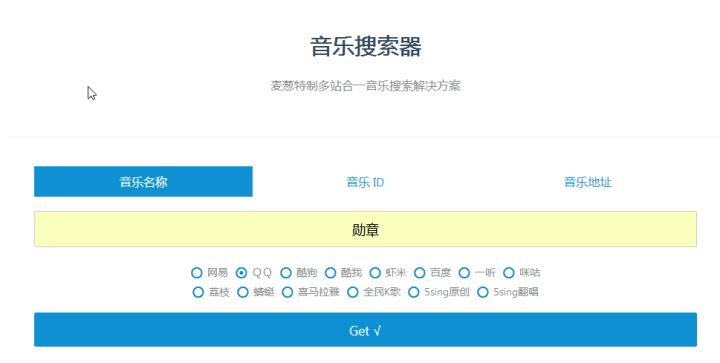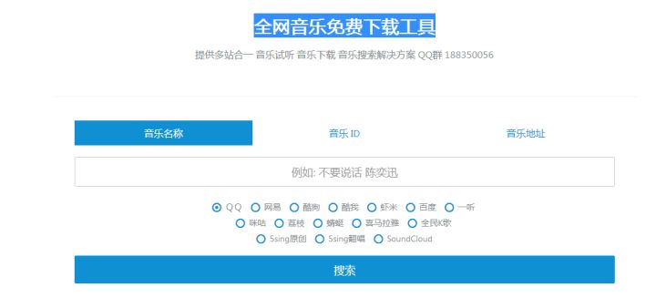 进入主页,点击歌曲搜索,可以选择不同的音乐源进行搜索