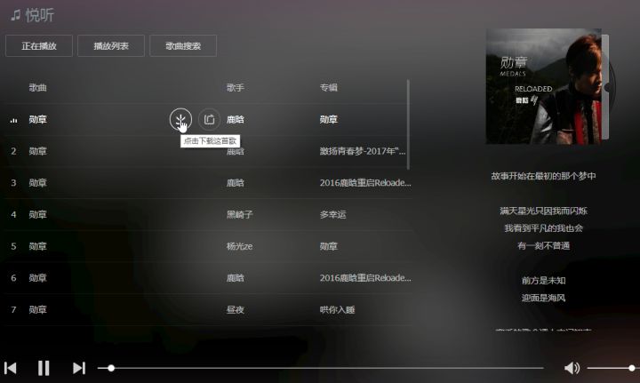 界面看着很舒服,支持网易云音乐、酷狗音乐、虾米音乐等多个知名音乐平台歌曲在线试听,可免费下载歌曲。