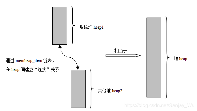 (1)内存堆管理用于管理一段连续的内存空间如下图所示,RT-Thread 将 “ZI 段结尾处” 到内存尾部的空间用作内存堆。